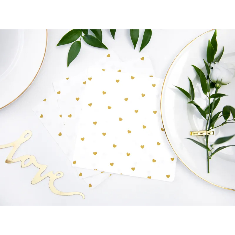 Χαρτοπετσέτες λευκές με χρυσές καρδούλες 33cm 20τεμ PartyDeco