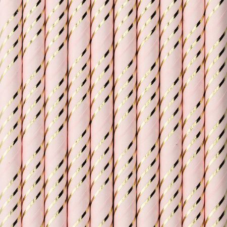 Καλαμάκια χάρτινα ροζ πούδρα με χρυσό σχέδιο 10τεμ 19,5cm PartyDeco