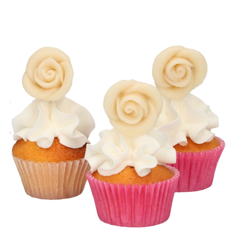 Τριαντάφυλλα λευκά από marcipan 6τεμ Funcakes
