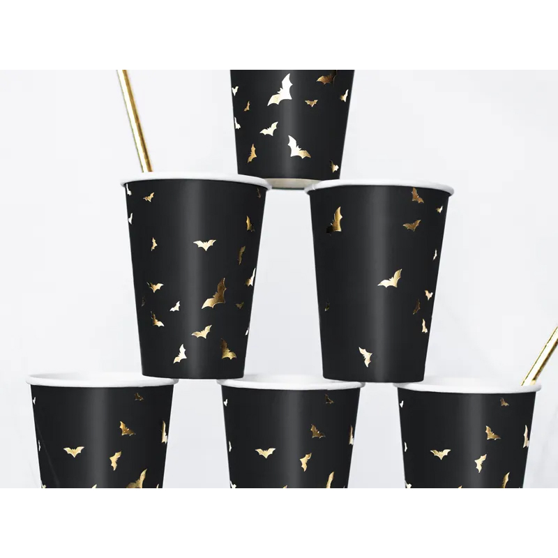 Ποτήρια χάρτινα μαύρα trick or treat 220ml 6τεμ χάρτινα PartyDeco ποσότητα