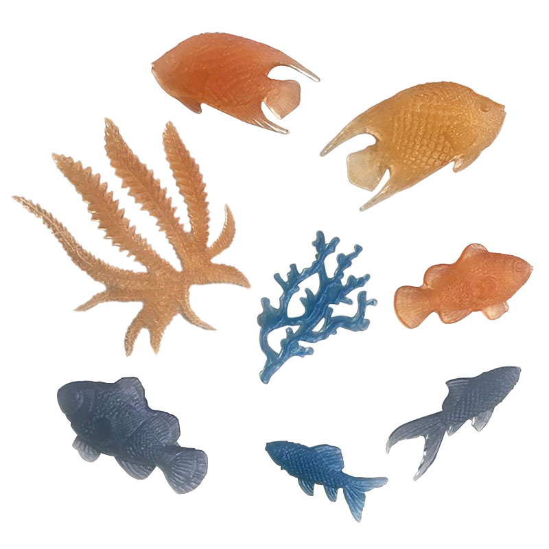 Διαστάσεις καλουπιού 13εκ ύψος και 9εκ πλάτος. Διαστάσεις ψαριών απο 2,5 έως 5,5εκ, διαστάσεις στα φύκια 4εκ το μικρό και 5,5εκ το μεγάλο.