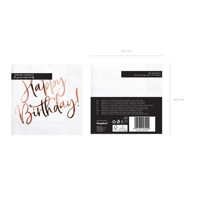 Χαρτοπετσέτες happy birthday ροζ χρυσό 33cm 20τεμ PartyDeco ποσότητα