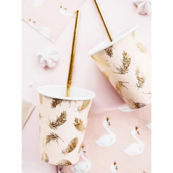 Ποτηράκια χάρτινα με φτερά χρυσά 220ml 6τεμ PartyDeco ποσότητα