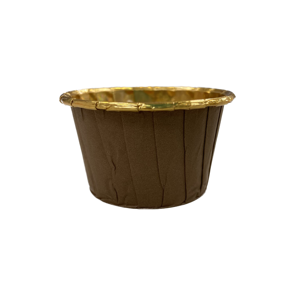 Θήκες cupcake σταθερές mini καφέ με χρυσό 3,8cm 50τεμ